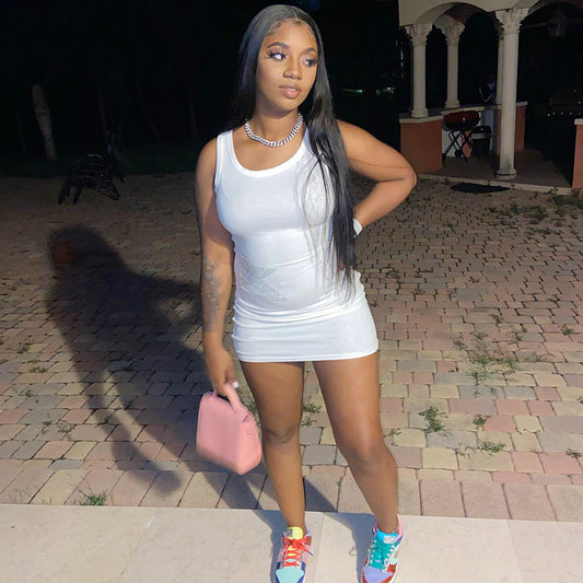 Women 2022 New Spring Fashion Casual Knitted Sleeveless round Neck Dress Female
