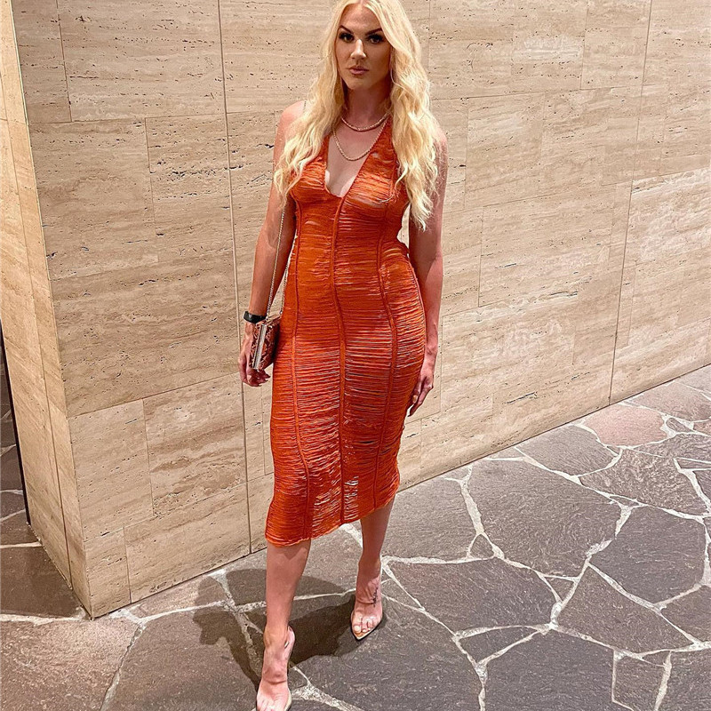 See-through Hollow Sexy Halterneck Skirt Knitted Tight Dress