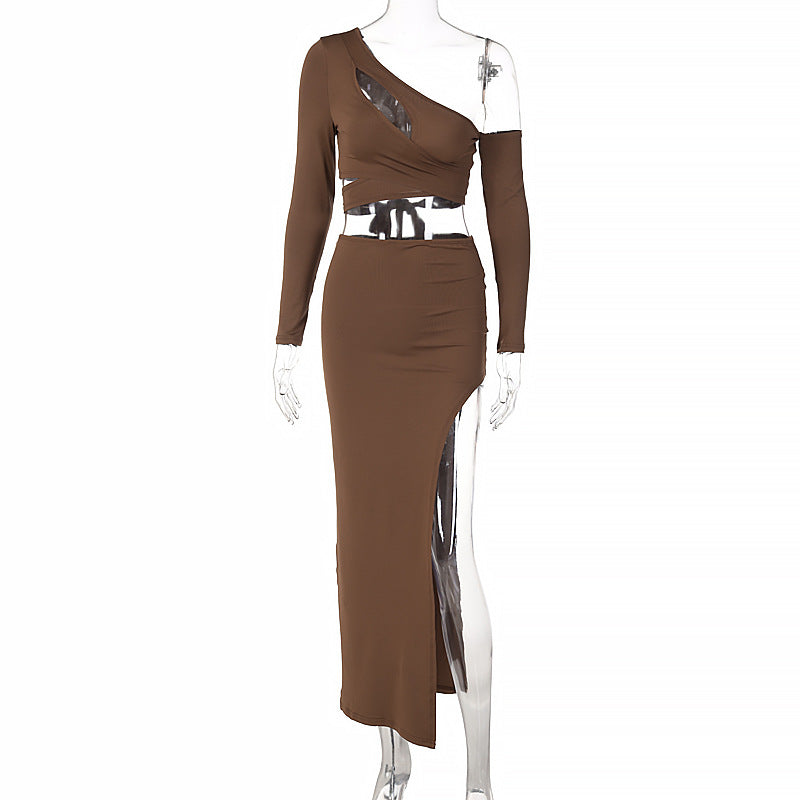 Diagonal Shoulder Crop-Top Short Top Set
