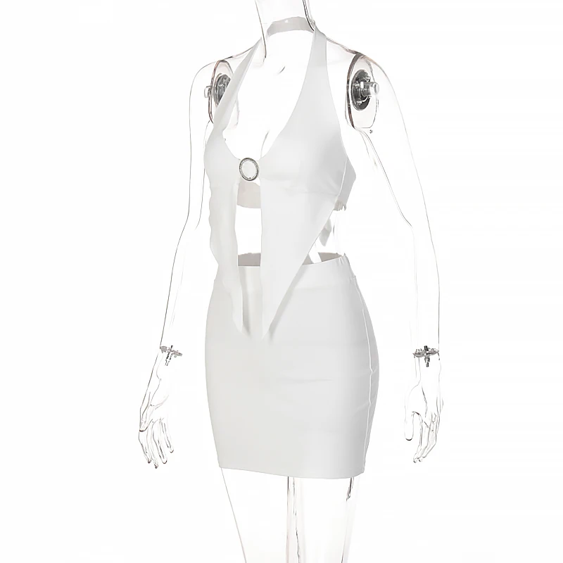 Diamond Ring Halter Sleeveless Top Skirt