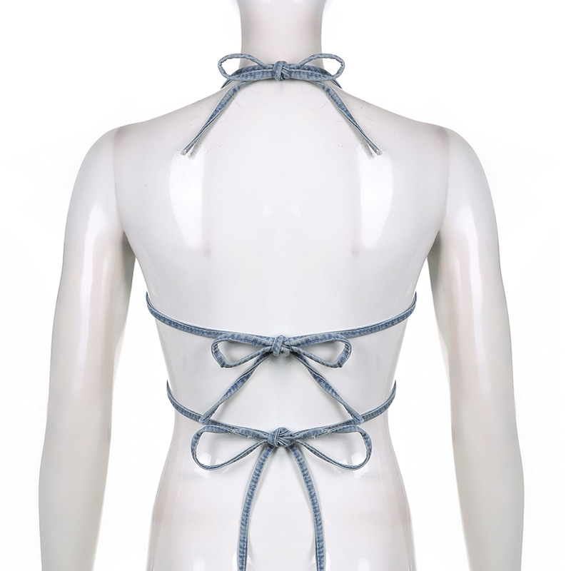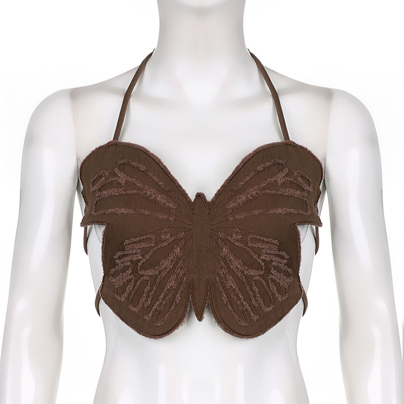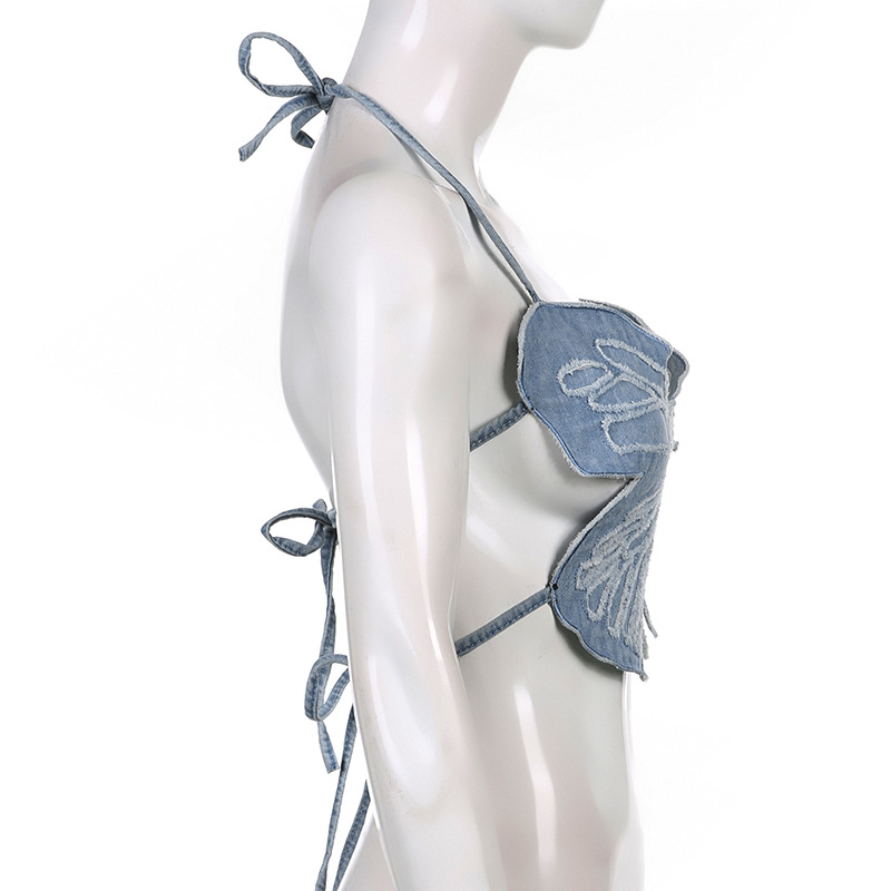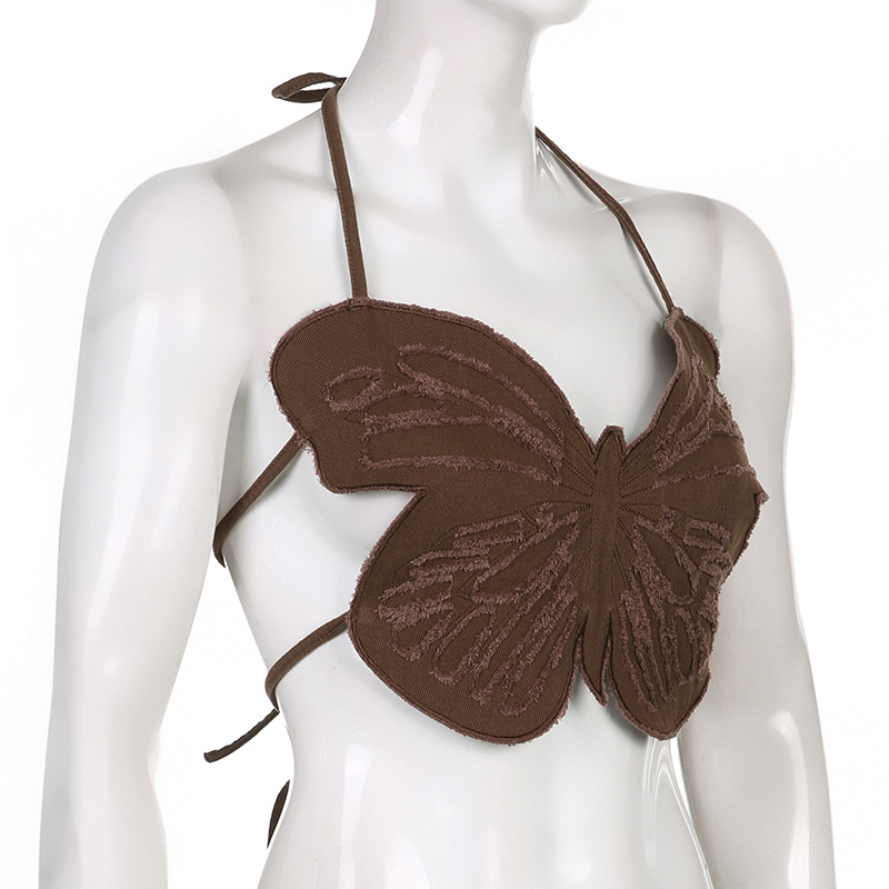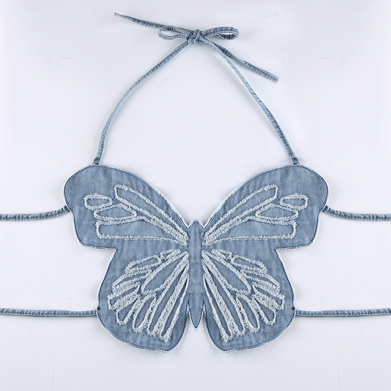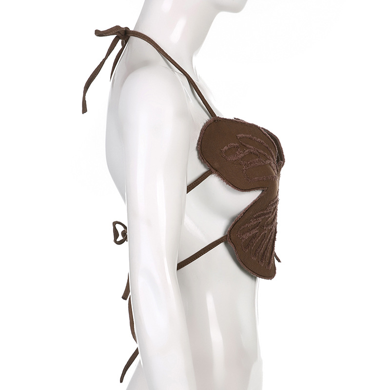 Sexy Butterfly Three-Dimensional Frayed Hollow out Strap Shirt