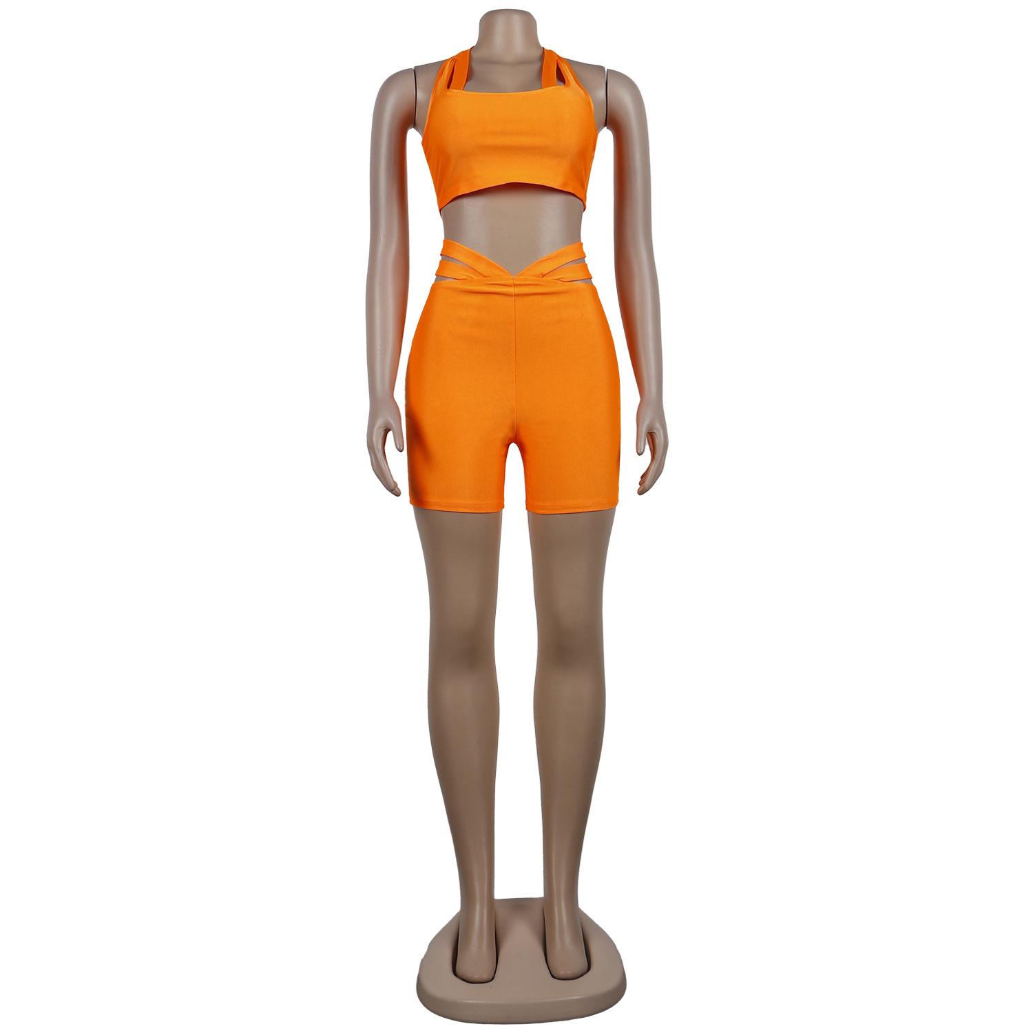 Sexy Chest Wrap Spaghetti Straps Sleeveless Shorts Two-Piece Set