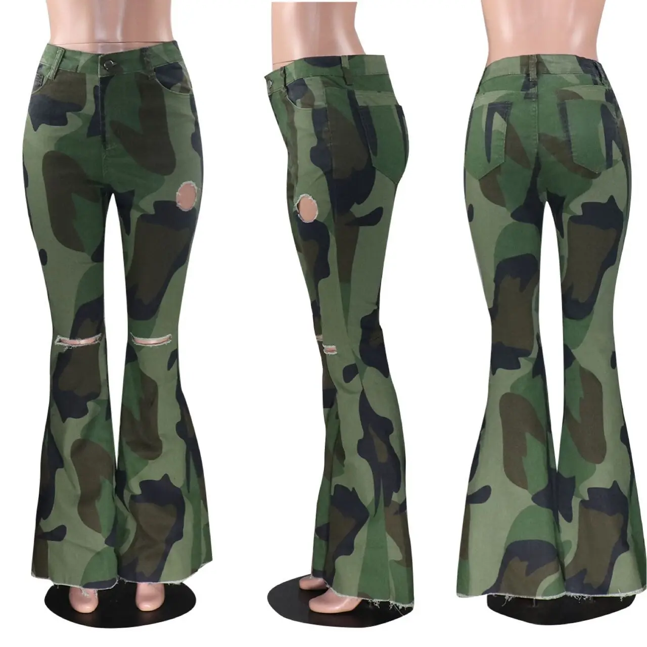 Skinny Ripped Boyfriend Distressed Denim Pants Flare Bell Bottom Jeans