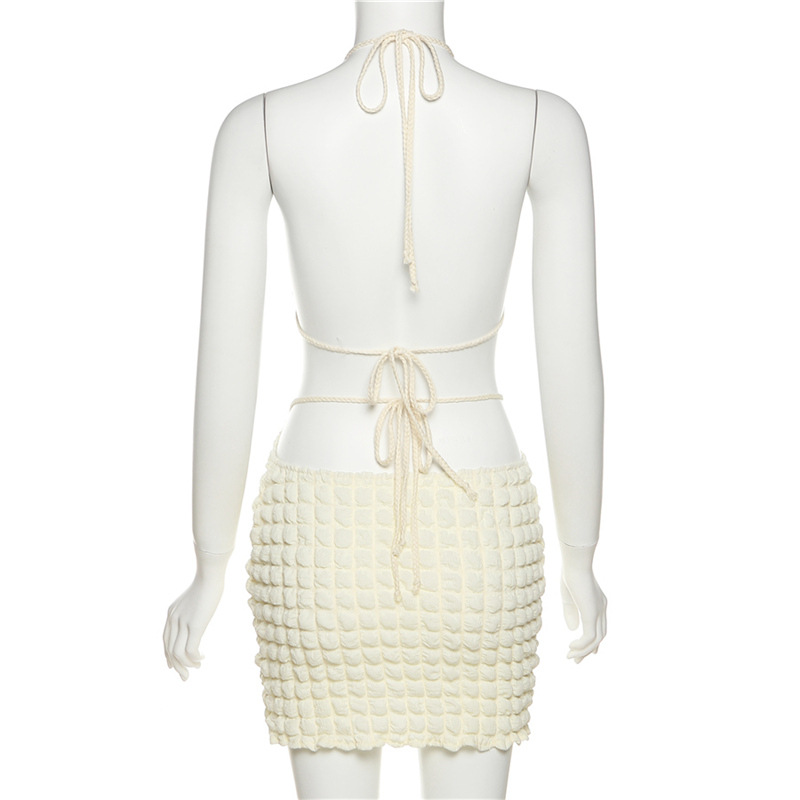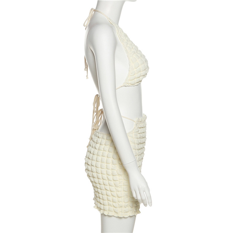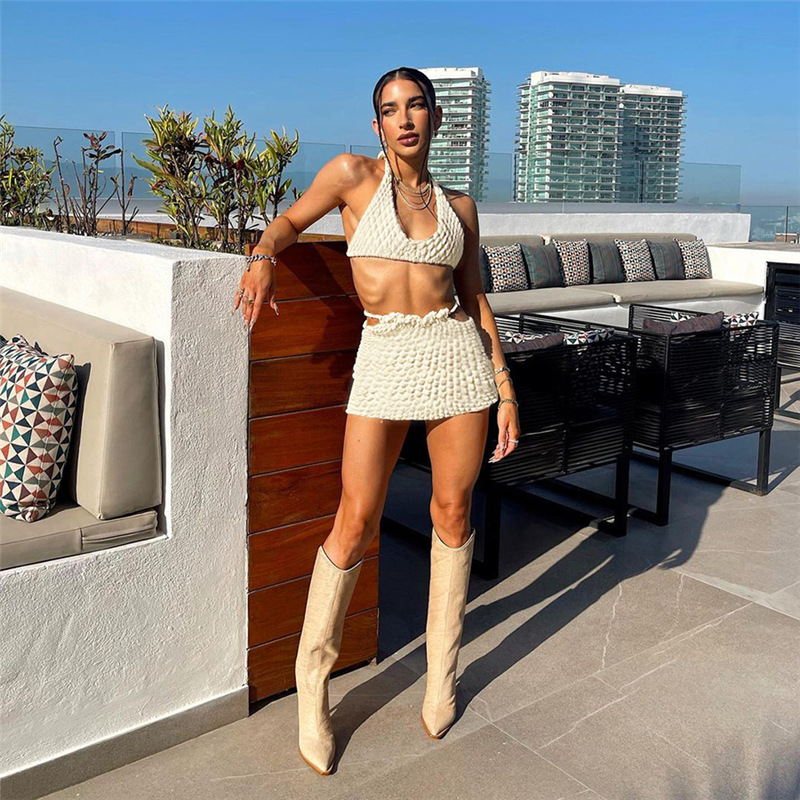Style 2022 Summer Women Clothes Solid Color Sexy Backless Halter Short Lace up Sports Leisure Suit for Women