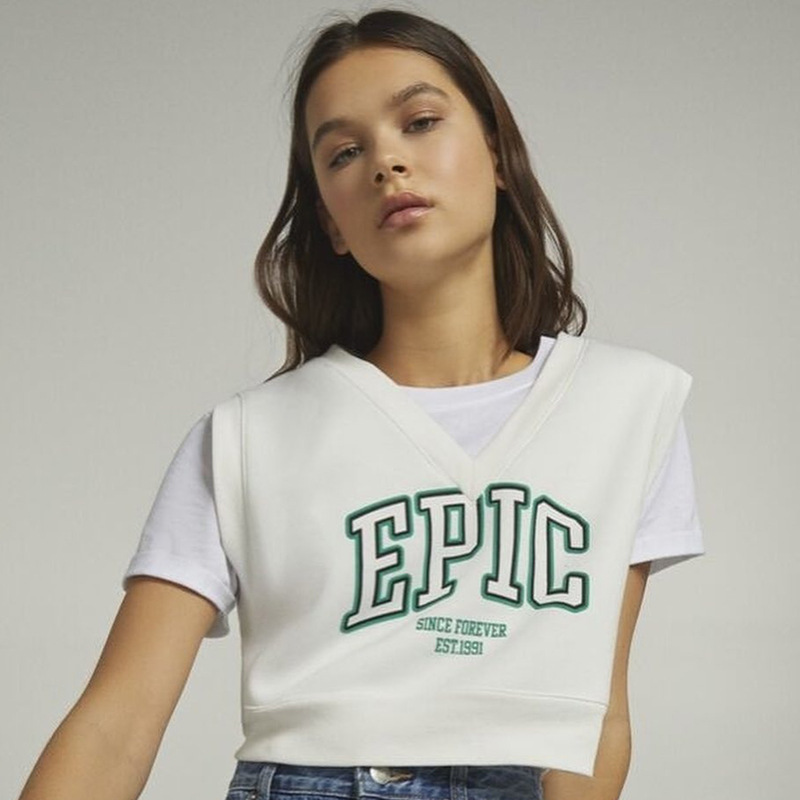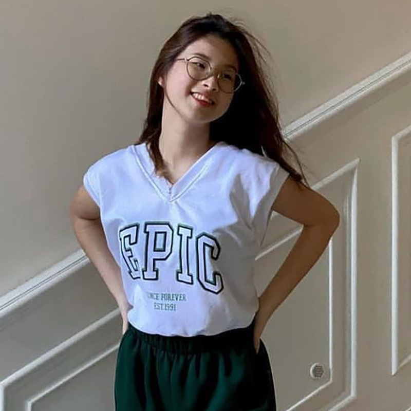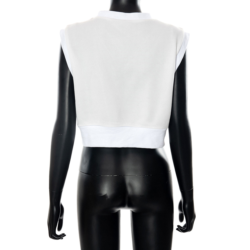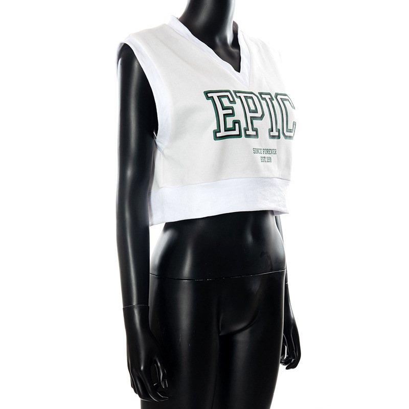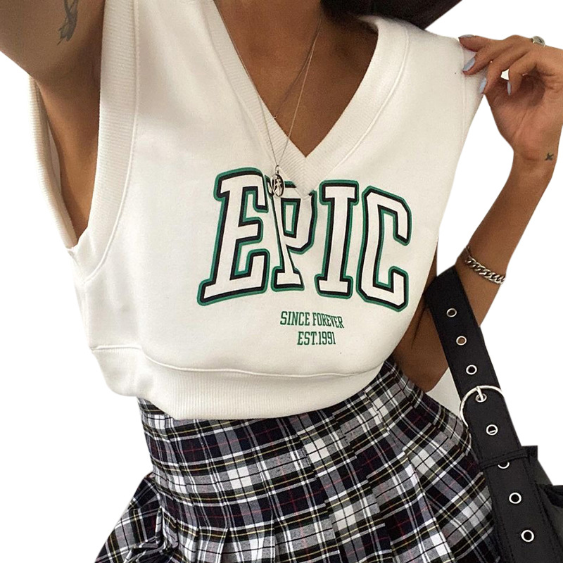V-neck Sleeveless Pullover Letter Graphic Printed Navel Fleece Top