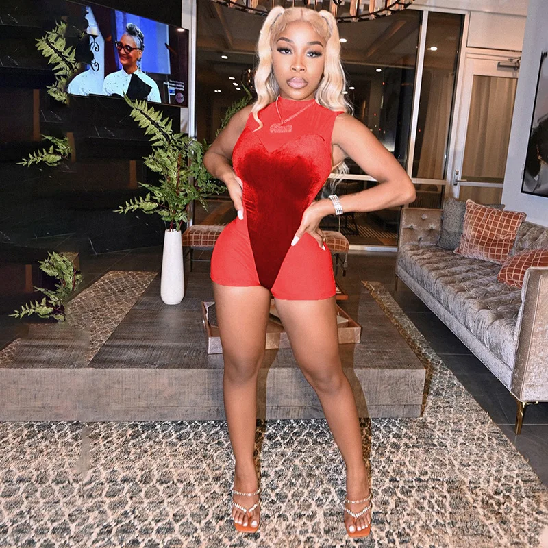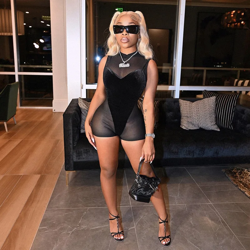 velvet mesh jumpsuit Causal Tight sports jumpsuits